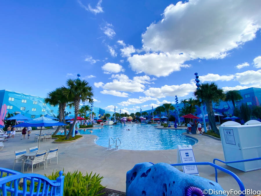 Both All-Star Music and All-Star Sports host their movie nights at their pools — however, both of these resorts are temporarily closed. If you want to enjoy this perk, you’ll have to book a room at Disney’s Pop Century Resort and head to the Hippy Dippy Pool deck (but heads up, that’s closed starting February 15th for refurbishment too!).