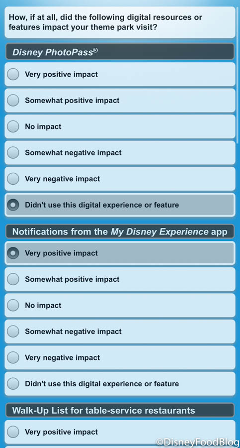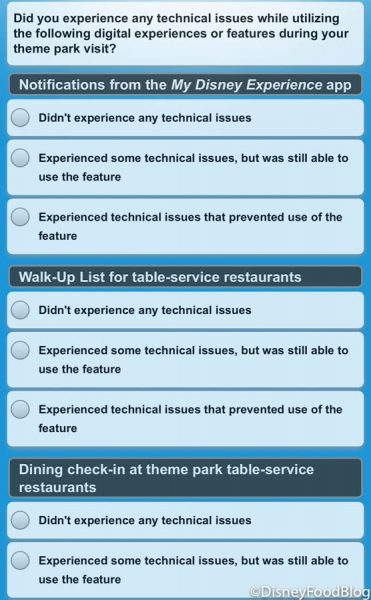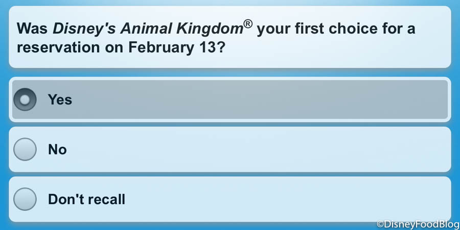 And, of course, some opinions were requested on the Disney Park Pass system. We especially thought this question was interesting: “Was Disney’s Animal Kingdom your first choice for a reservation on February 13th?” As a reminder, park reservations were pretty full that day.