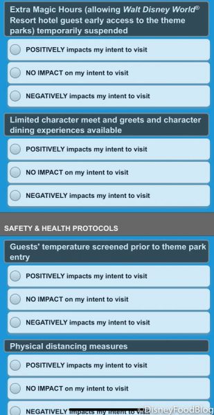 Then, we got a little bit more into the nitty-gritty of the individual impacts. Disney asked about how missing offerings impacted guests’ visits as well as individual examples of the health measures.