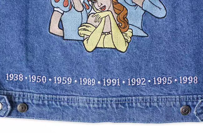 All of these princesses’ movie release dates are embroidered on the bottom.