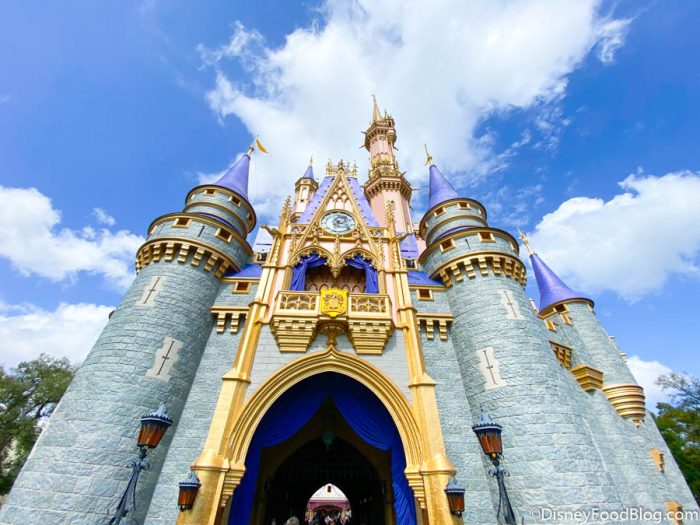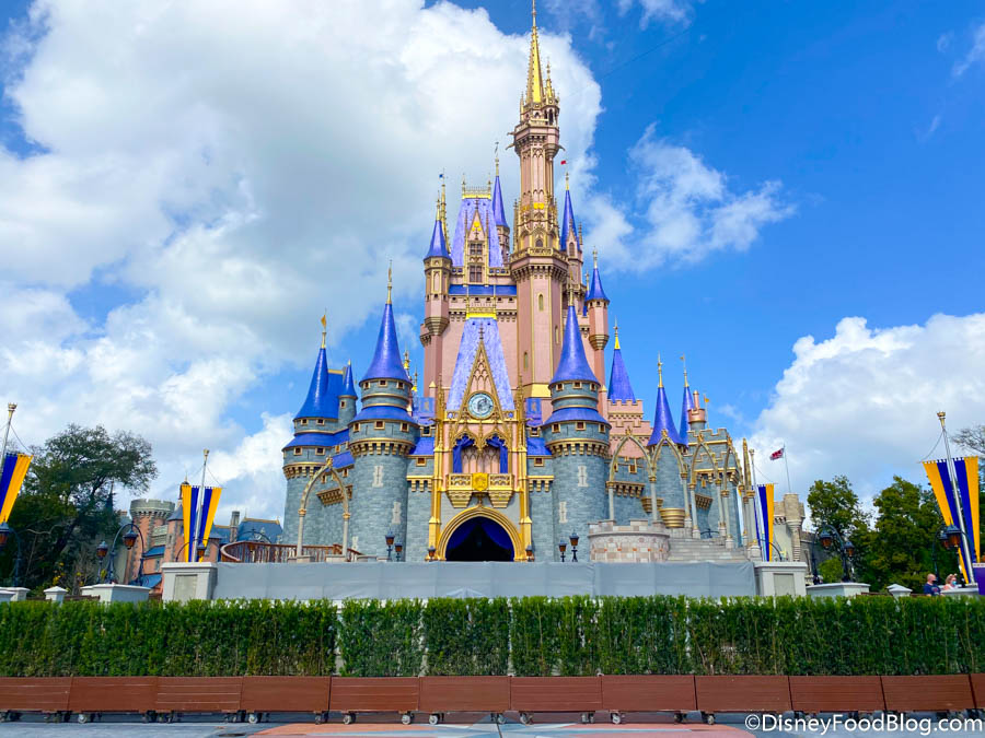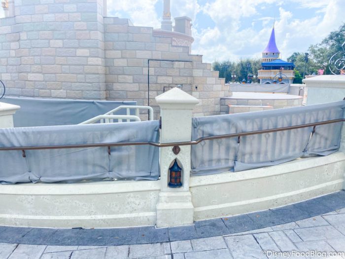 We’ve also seen other areas around Disney World getting some makeovers like the Train Station on Main Street, U.S.A., the Magic Kingdom entrance sign, and even the Disney World entrance signs. But, now it looks like Disney has potentially started another refurbishment project at Cinderella Castle that’ll definitely make your Castle pics look a little…different.