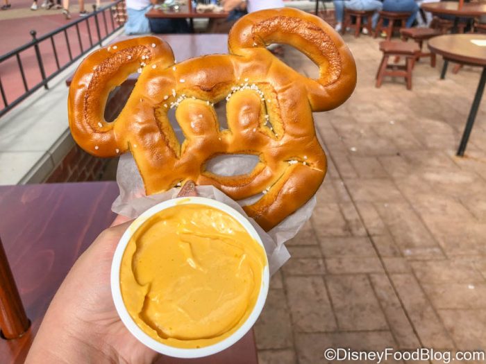 And, at various spots around Disney World, you can get the good stuff for $1! Casey’s Corner at Magic Kingdom has its cheese sauce available as a side for a buck, which we highly recommend getting to dip your corn dog nuggets into.