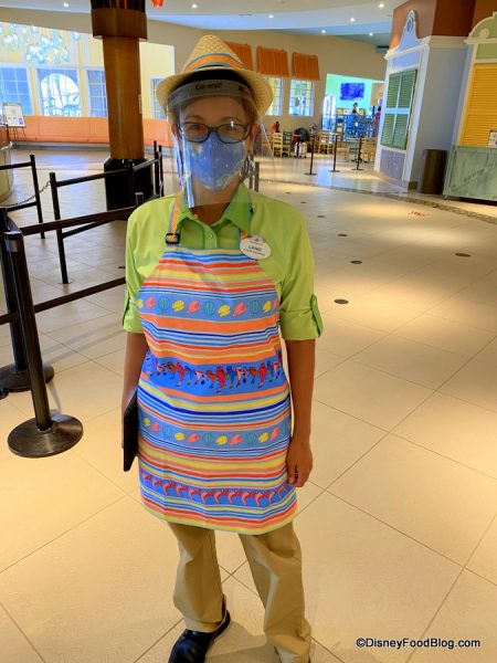 The new aprons appear to be a not-so-subtle nod to current refurbishment which will ultimately result in Moana-inspired guest rooms on the property! (Can you spy the Heart of Te Fiti in the design?)