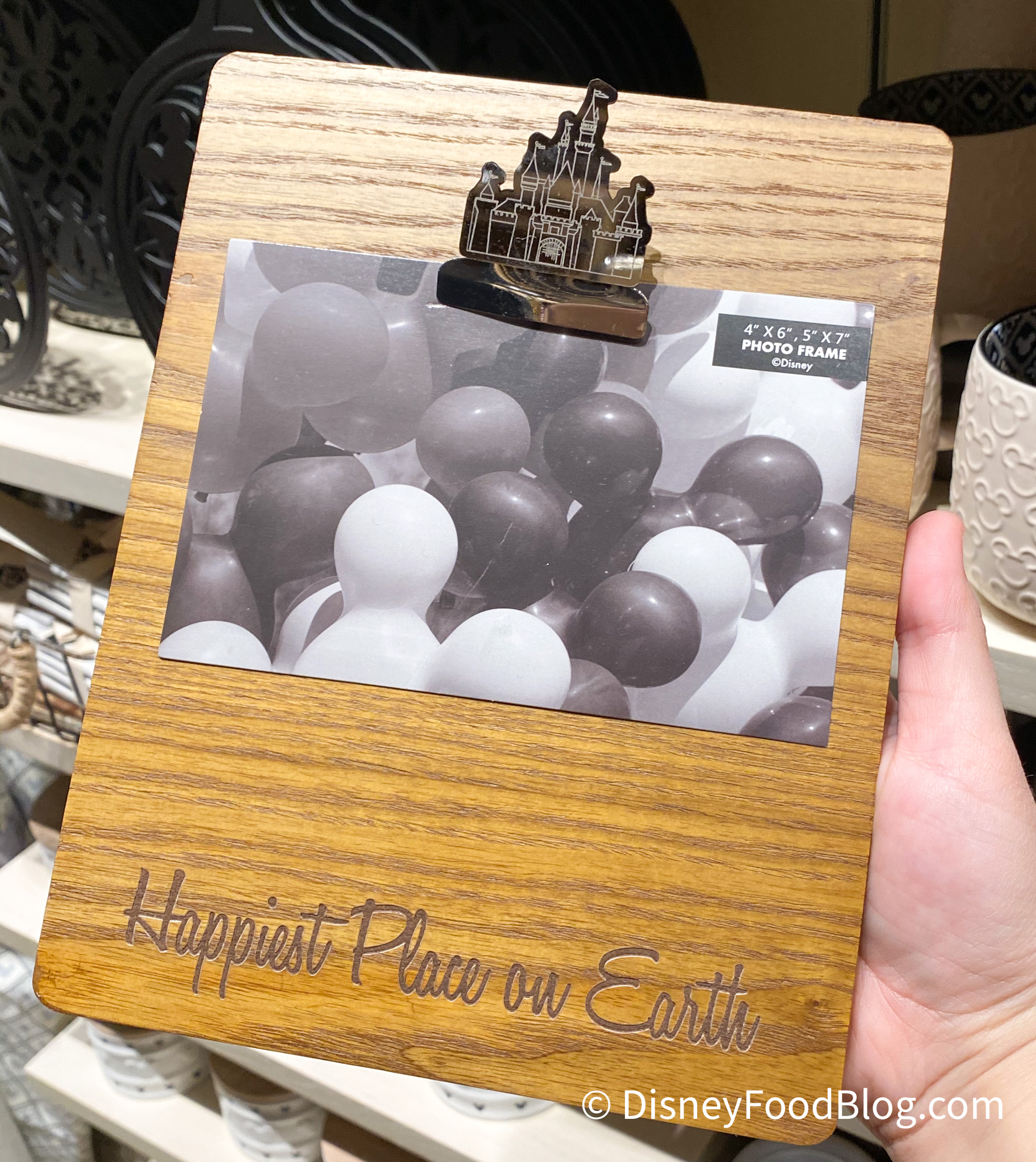 The second photo frame has a cute clipboard design and reads “Happiest Place on Earth.”