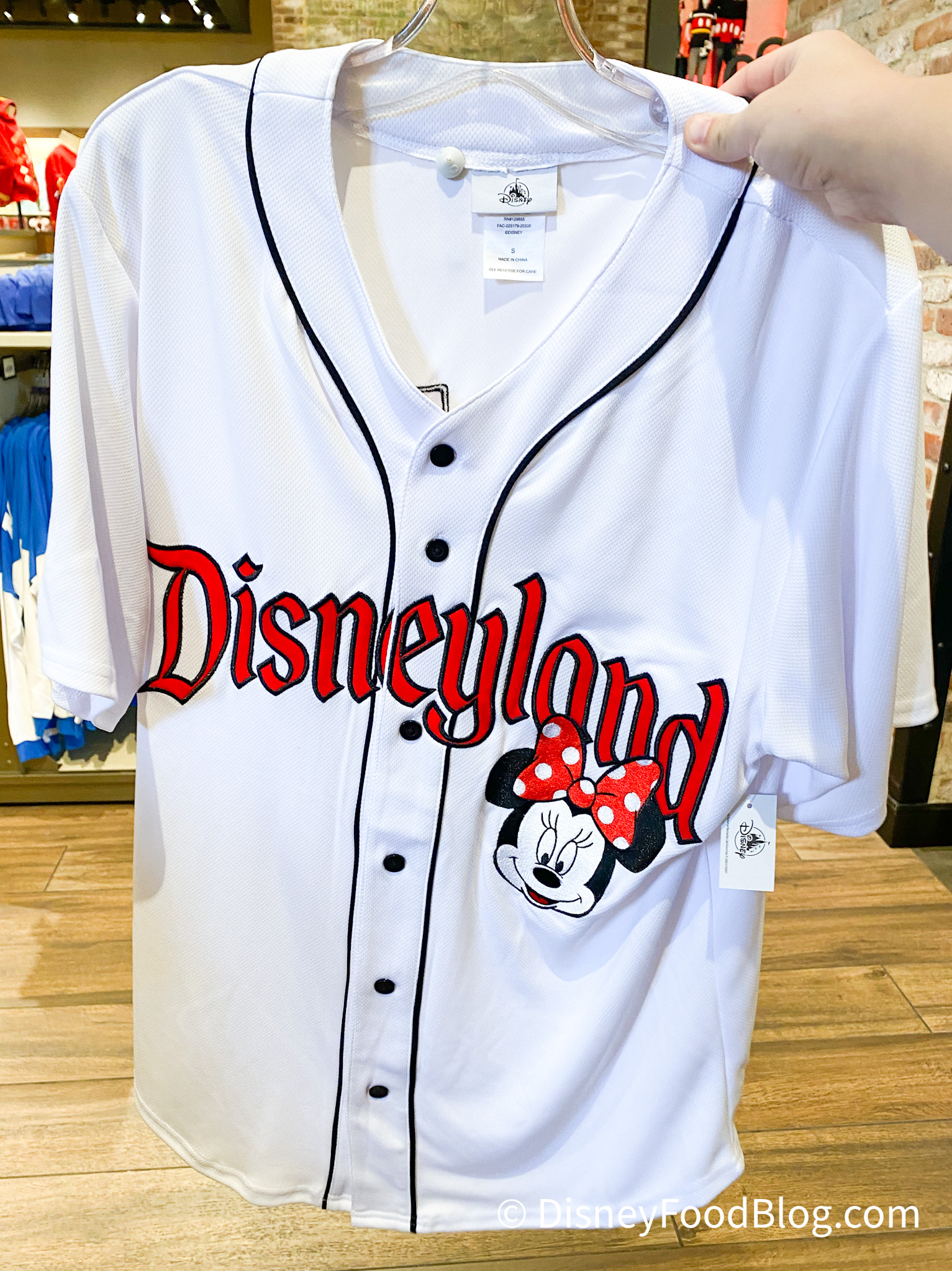 There was more apparel where that came from — we also spotted a couple more baseball tees! The first is a white tee featuring Minnie Mouse…