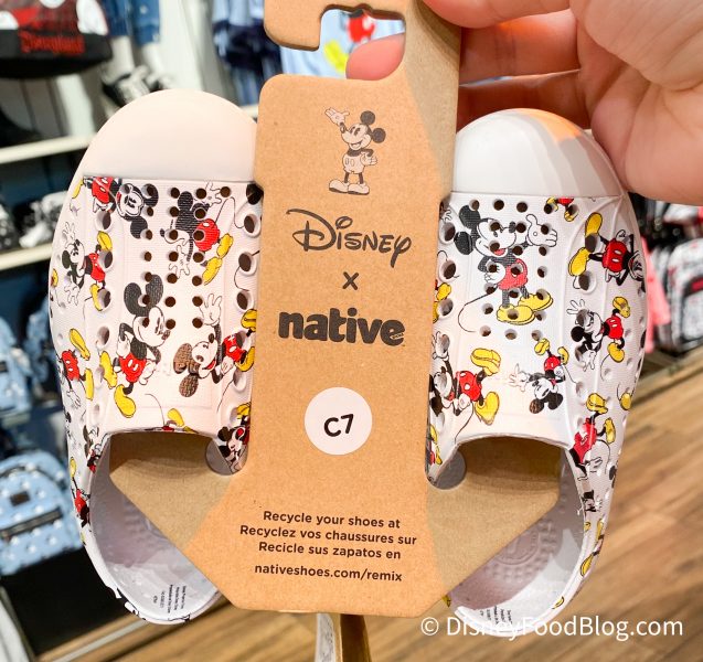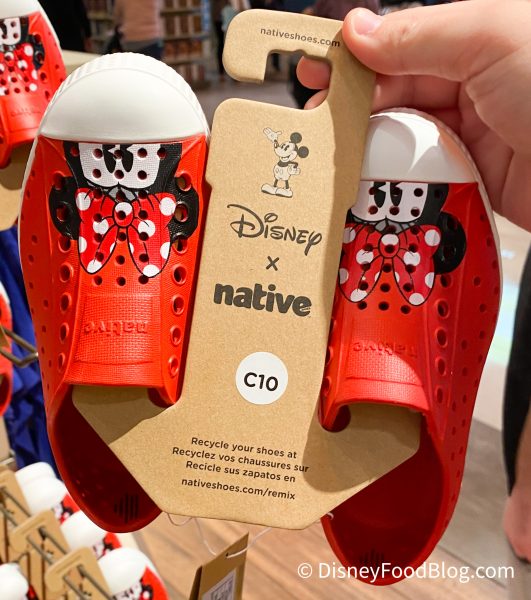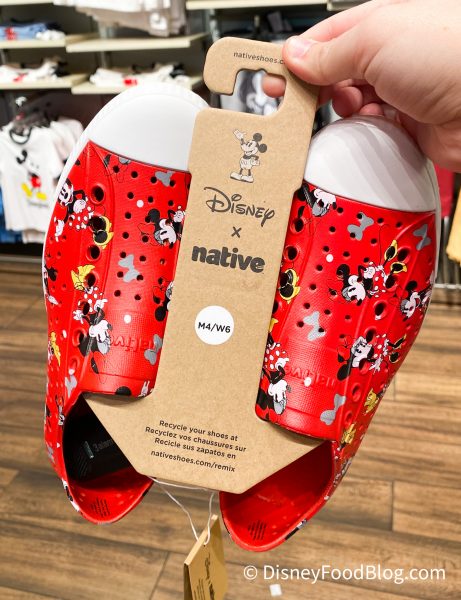 And of course you’ll need some new kicks to go with all this new clothing! Luckily, the new Disney x Native shoes have arrived to Downtown Disney! There were two colors available for kids, red…