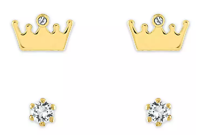 The goldtone crown earrings are accented with Swarovski crystals, while the stud earrings feature those Swarovski crystals in a goldtone setting.