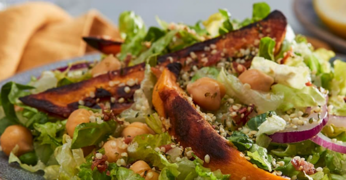 Charred Sweet Potato, Chickpea & Bacon Caesar Salad