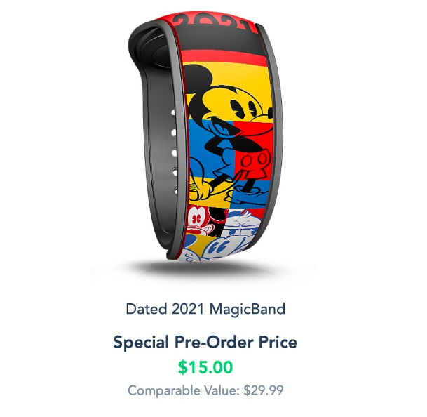And lastly, if your trip is in 2021, you may want to get the 2021 MagicBand. It features pop art of Mickey and friends and costs $15, discounted from $29.99!