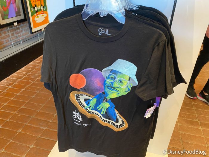 We recently spotted some new Soul t-shirts with the murals you can find around Disney Springs on them. Now, these t-shirts are available in the Art of Disney shop right by the new Soul of Jazz Exhibit.