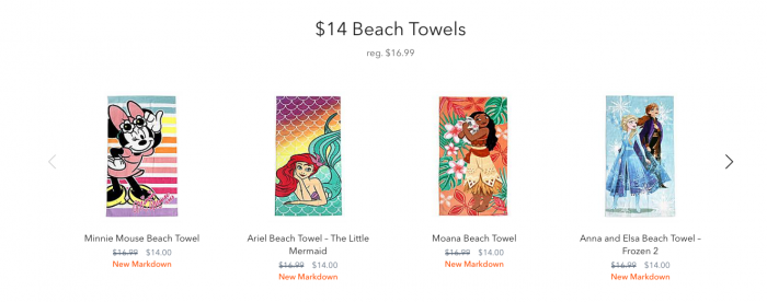 But, if you want to grab a beach towel or two for yourself and your kiddos, you might as well get them at a discount! Right now, you can get quite a few Disney beach towels on sale for $14 (down from $16.99) on shopDisney.
