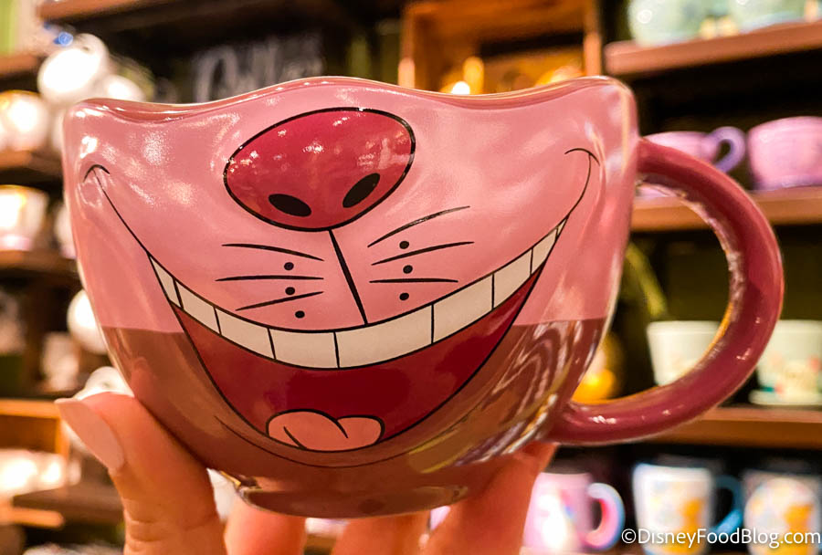 These new (slightly creepy) character mugs have appeared in Animal Kingdom as well. We saw this mug featuring the wide grin of the Cheshire Cat.