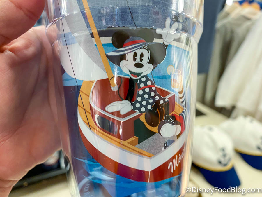 Over at The Market at Ale & Compass in Disney’s Yacht Club Resort, we spotted a new Tervis that lets you take the sea vibes to land. The cup features Mickey and Minnie out for a sail on Crescent Lake with the Yacht Club Resort in the background.