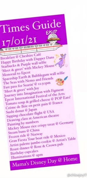 Reader @chloejoy17 on Instagram shared some very special photos with us, showing how she went ALL OUT to bring Disney World to her own home for a birthday celebration. She made nearly identical Disney snacks and even some EPCOT festival favorites! Plus, there’s an entire times guide breaking down the day! This seems like a pretty incredible way to spend a birthday, TBH.