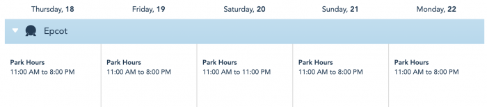 Most of the days this week stick to EPCOT’s normal hours from 11AM – 8PM. On Saturday, the park was previously scheduled to stay open until 9PM, but now it will remain open for two additional hours! Saturday’s new hours are 11AM – 11PM.