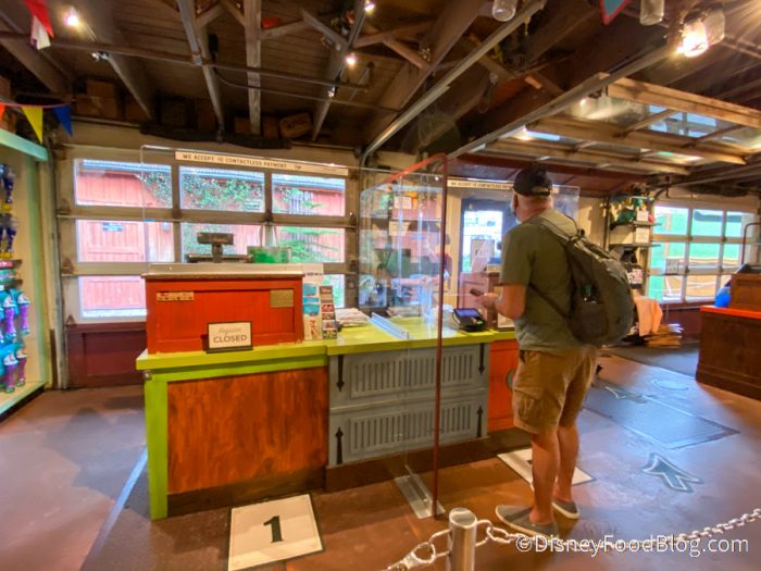 There is plexiglass EVERYWHERE at Disney World right now. And now, there’s a little bit more. Chester & Hester’s added a divider to the plexiglass so that they can now have four registers open, rather than just two.