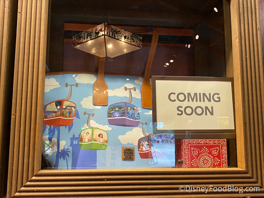 It seems like a new Disney Dooney & Bourke collection launches every week. And there’s another one coming soon, but this one features the Skyliner! We found a “coming soon” display.
