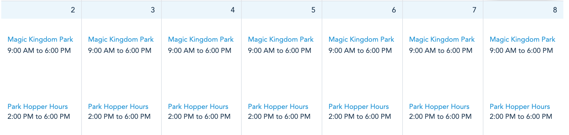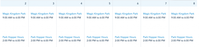 From May 2nd through May 8th, the operating hours at Magic Kingdom are currently scheduled as 9AM-6PM.