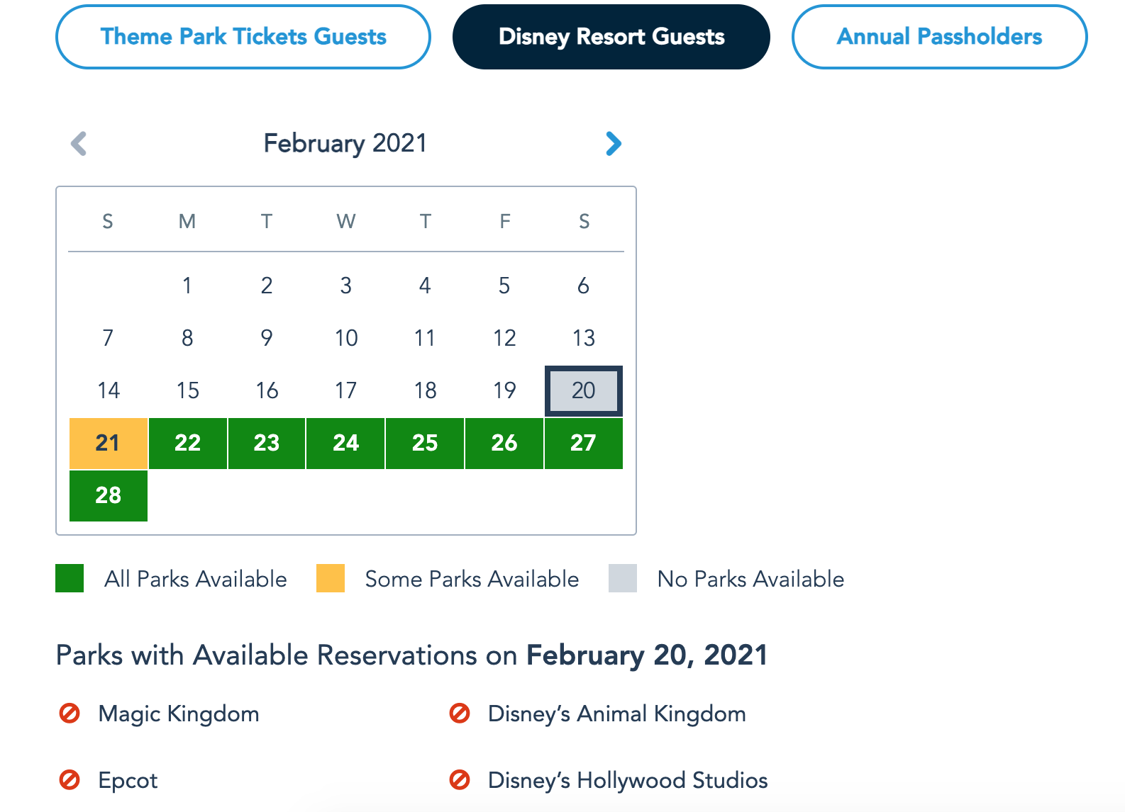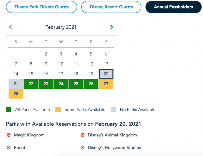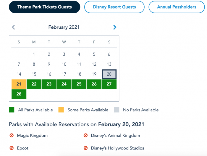 The Disney Park Pass reservations for all four Disney World parks are completely sold out today. The availability at all four parks is completely gone today for all types of guests, including those staying at a Disney World Resort hotel…
