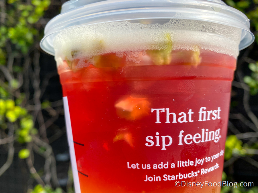 If you’re looking for something with less caffeine, you might need to skip this one. However, it’s a great alternative to morning coffee. Especially in a hot and humid Florida when just the idea of a hot coffee makes you sweat and you’re not in the mood for a cold brew or frappuccino. This one is ONLY available at the West Side Starbucks location at Disney Springs, so if you want to grab one, you can get it there for $5.75.