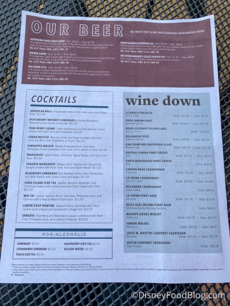 And as this IS a brewery (it’s right there in the name), the back of the menu features beers on tap, cocktails, and wine.