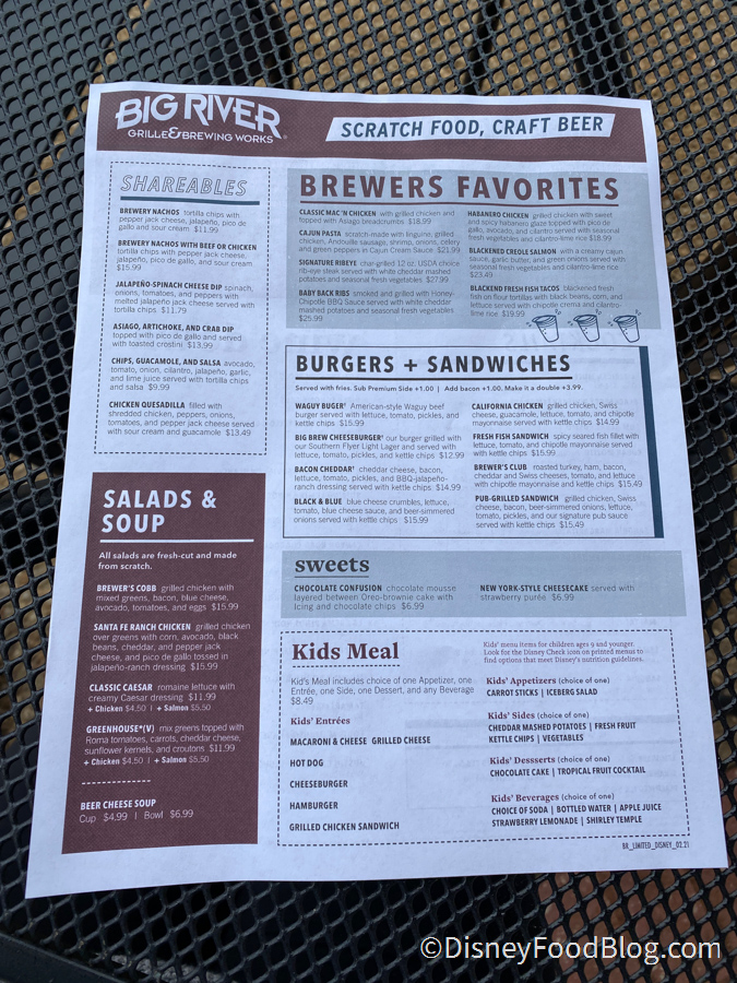 Big River Grille serves up hearty eats like steaks, burgers, and nachos, along with a variety of beer. Along with many other Disney World restaurants, Big River Grille didn’t reopen along with the rest of the parks last summer.