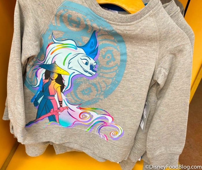 We found a few new shirts! There’s a colorful sweatshirt with Raya and Sisu the last dragon on it for $39.99…