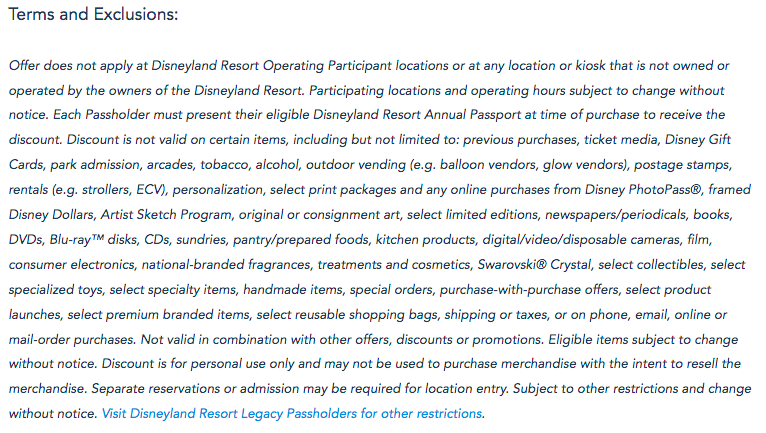 A few more details! There’s some exclusions to what you can purchase with this discount. That includes Disney gift cards, balloons, strollers, personalization, and more. Here’s the full list: