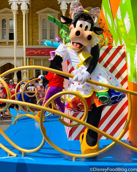 And on our way outside of the park, we spotted the Goofy Cavalcade! Clarabelle Cow just HAD to strike a pose for us.