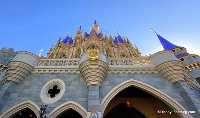Everyone seems to really enjoy taking pictures of Cinderella Castle from the front, and undoubtedly that is a beautiful view. But, don’t forget to visit the back of the Castle as well. Not only will you get some gorgeous and unique views here, but you’ll also get the chance to see something very special. See that golden crest shining just to the side of the large archway?