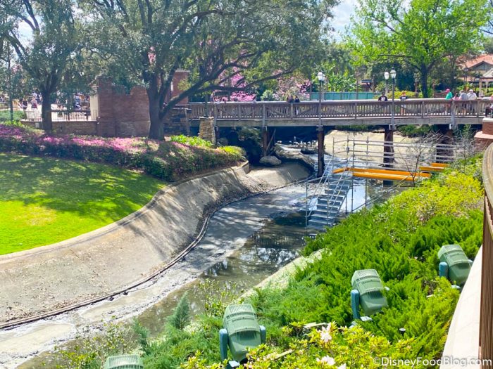 Some work over at the Castle definitely surprised us! The Cinderella Castle Moat is completely DRAINED! We just got the Rivers of America filled again and now the moat is gone?