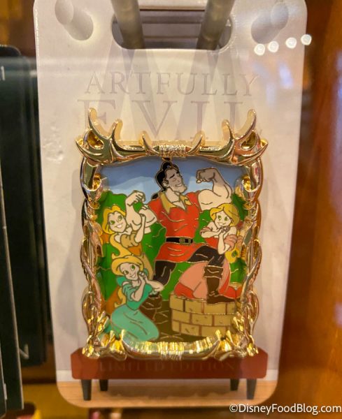 We also spotted this “Artfully Evil” Gaston pin that we previously saw at Pin Traders in Disney Springs.
