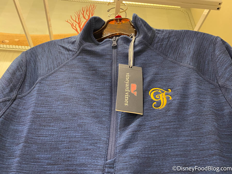 On the front, there’s an embroidered Grand Floridian logo. Now, this is a nice-looking pullover, but it’ll cost ya. It’s priced at $135.00.