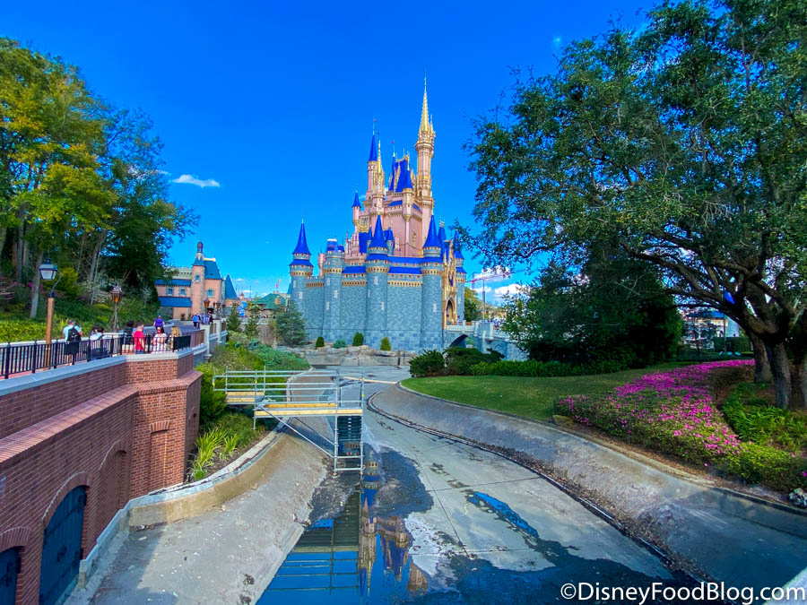 So many things around Walt Disney World are getting a bit TLC right now. First, it was Rivers of America, and now the moat around Cinderella Castle is COMPLETELY DRAINED! It’s almost like staring at the bottom of our Dole Whip cup after we’ve licked it clean but less delicious.