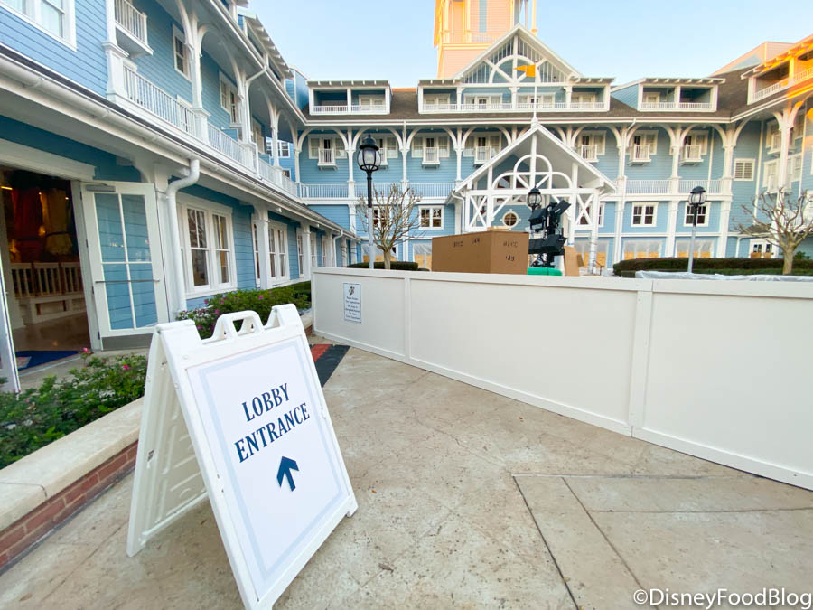Now, on to the construction updates. There was a good amount of construction going on outside of the Beach Club. We spotted low construction walls and signage routing guests into the lobby.