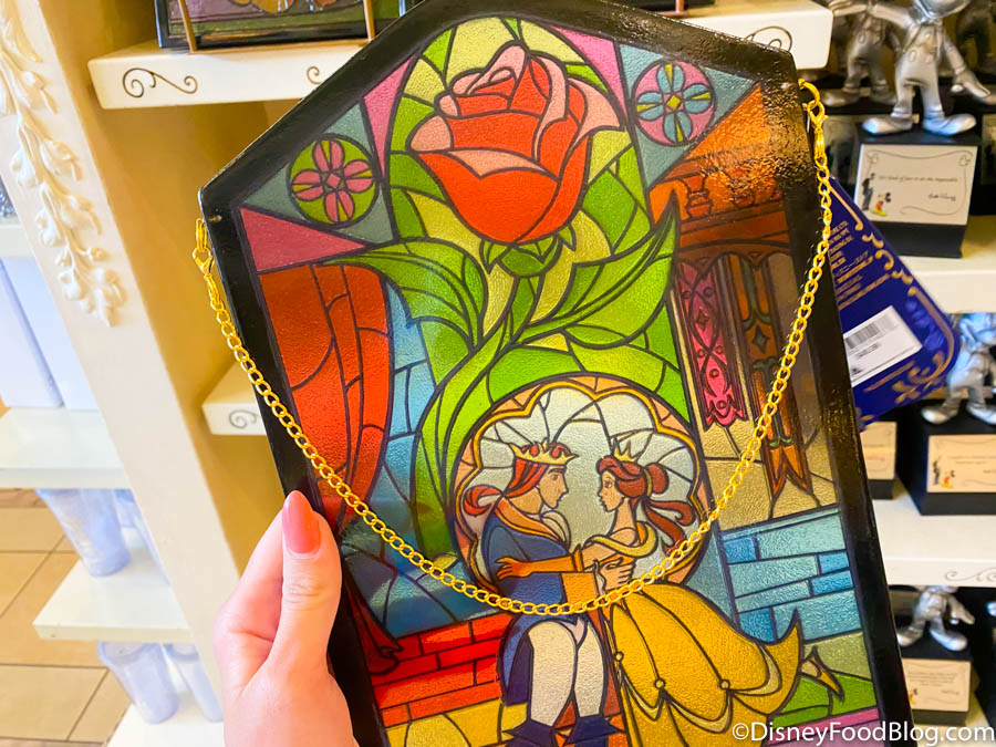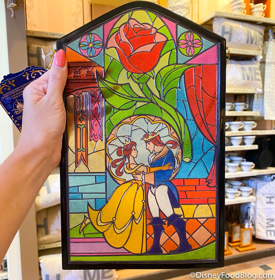 In the Emporium, we found some Beauty and the Beast-inspired wall decor. It looks like stained glass art of Belle and her Prince (who is NOT in Beast form), dancing in front of the Enchanted Rose.