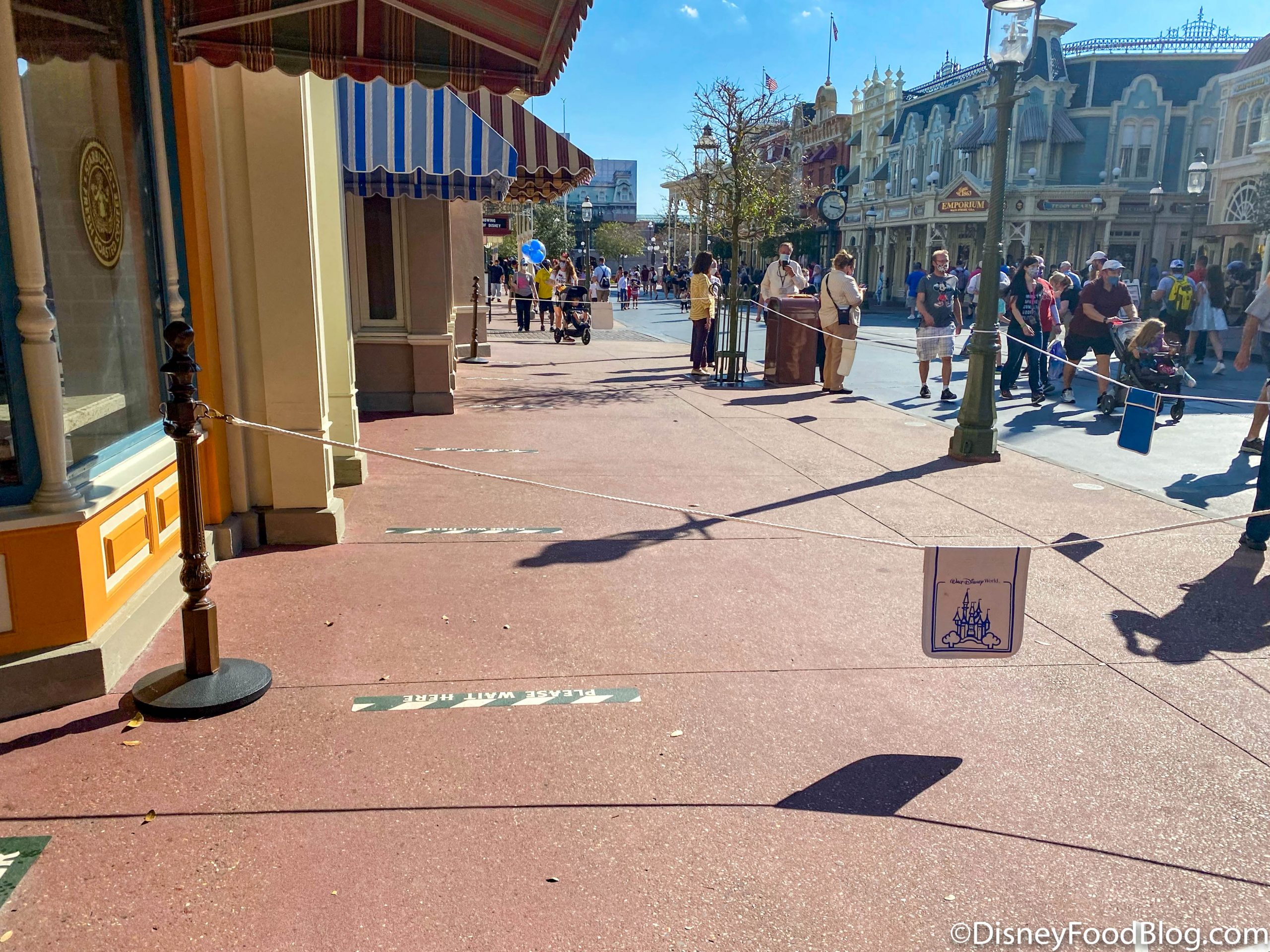 While we were chillin’ on Main Street, U.S.A. eating a Rice Krispie treat (as one does), we spotted something unusual: there was a broken window above the exit door for Main Street Bakery!