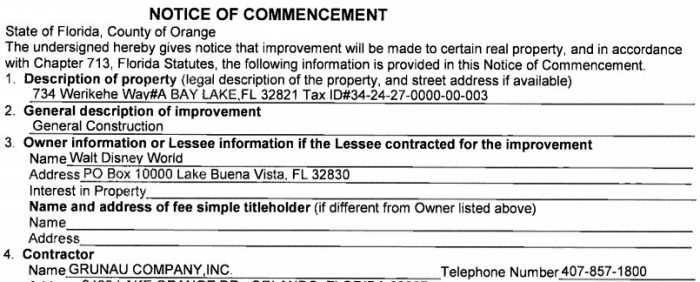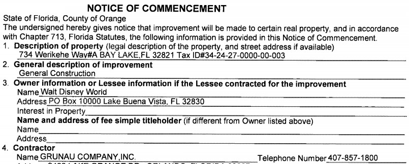 This one is filed with Grunau Company for “General Construction.” Grunau Company is another one that we see a lot for maintenance and such. The Expedition Everest queue is SUPER detailed so it makes sense that Disney might hire a contractor to perform the work.