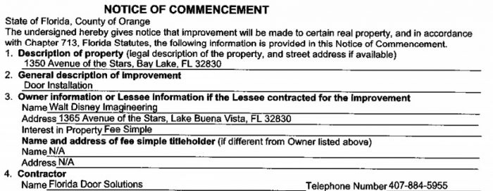 Typically when a permit is filed by Imagineering, it means it directly has to do with Imagineering plans. So, though this may just be some sort of boring old door, it could also be a piece of the attraction itself. After all, in most cases, you don’t need an entirely separate contractor just to do the doors.
