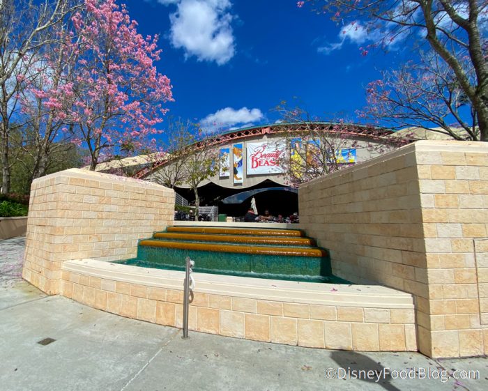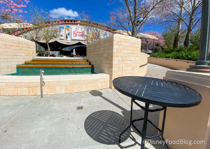 We have good news for guests visiting Disney’s Hollywood Studios. There is now some extra outdoor seating — with tables — at the Beauty and the Beast Live on Stage theater!