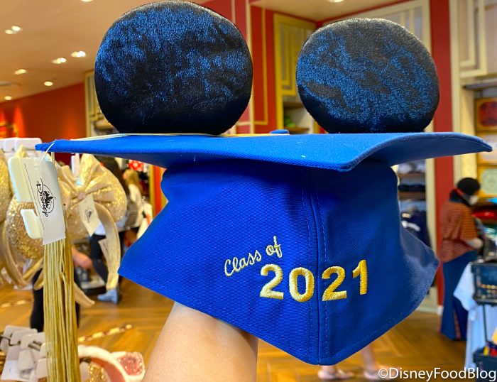 We’ve seen the 2021 Mickey Graduation Ears pop up around the parks, and Mickey’s of Hollywood is celebrating grads now too! The blue hat has “Class of 2021” etched on the back with velvet Mickey ears on top.