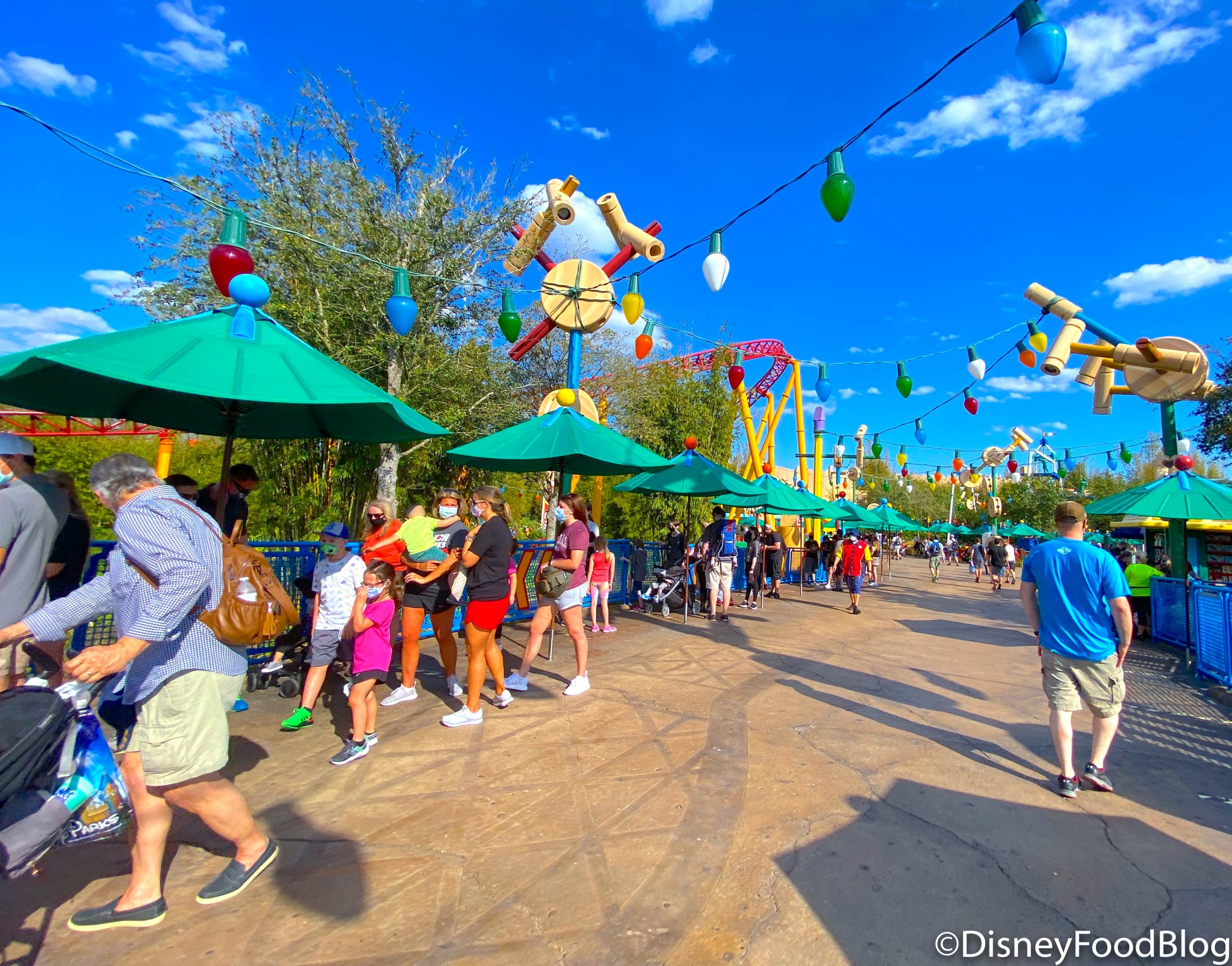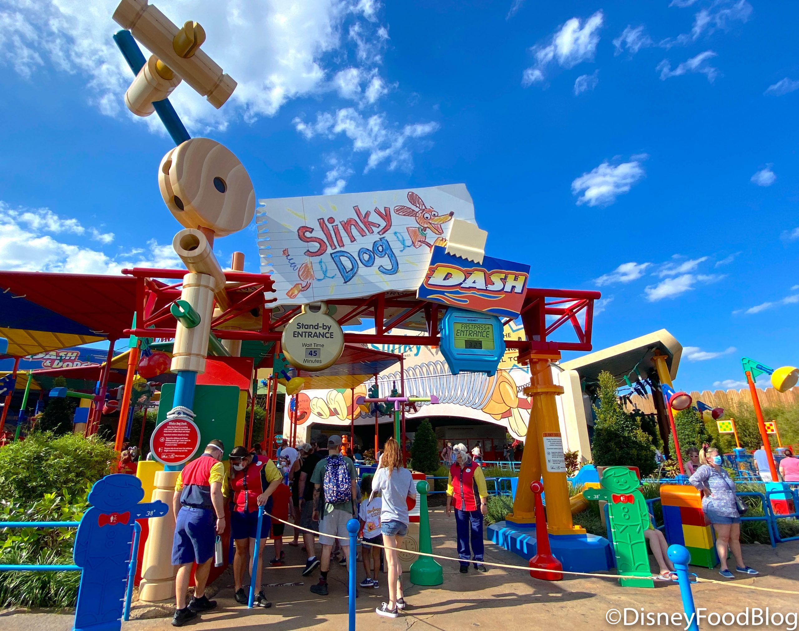 We noticed that Toy Story Land was a hot spot for families as rides like Slinky Dog Dash had a 45 minute wait…