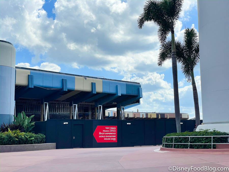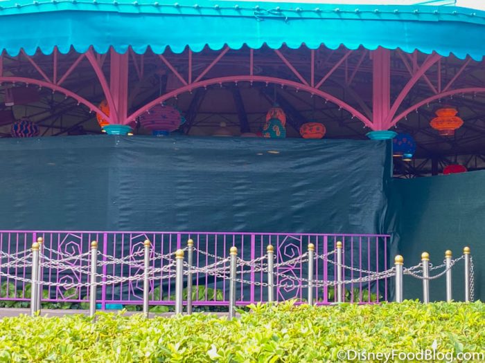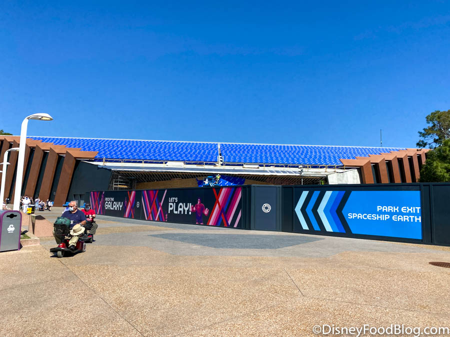 Now, don’t get too excited. Although some of EPCOT’s walls have come down, there are still plenty more throughout the park as it undergoes its transformation 🙃. Currently, work continues on the refurbishment of Mouse Gear’s exterior.
