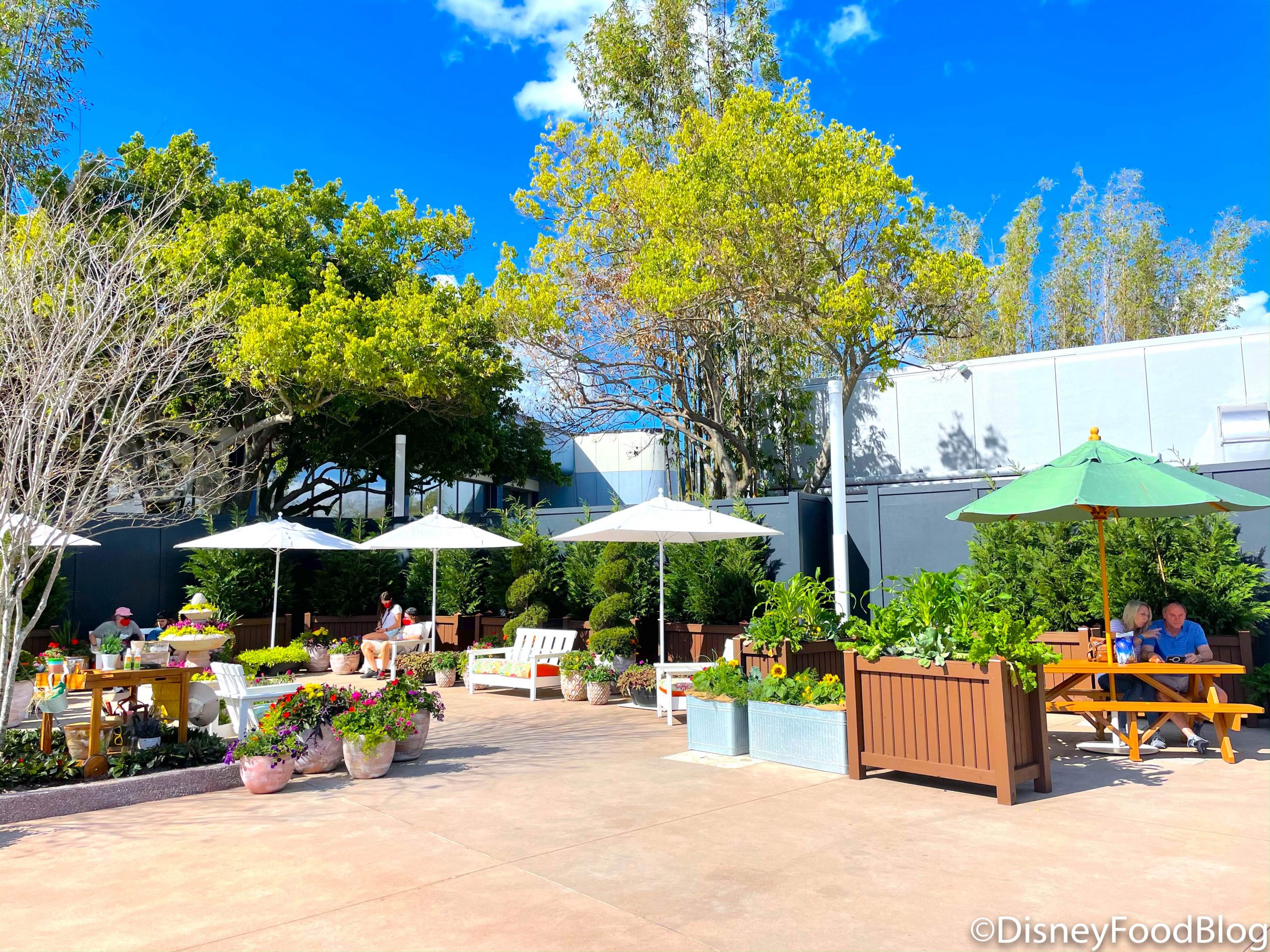 There are also umbrellas so you can pop out of the Florida sun for a moment before you continue to make your way around EPCOT!