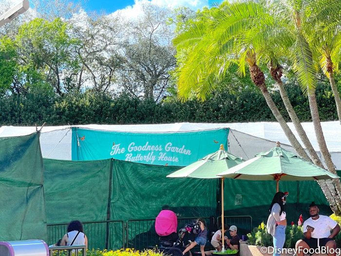 We can’t believe that the EPCOT Flower and Garden Festival is already kicking off later this week! We already know there’s going to be amazing entertainment and even BETTER food booths this year. As we were walking through the park, we noticed that the tent for the Butterfly Garden near The Land had already started to be set up ahead of the festival.