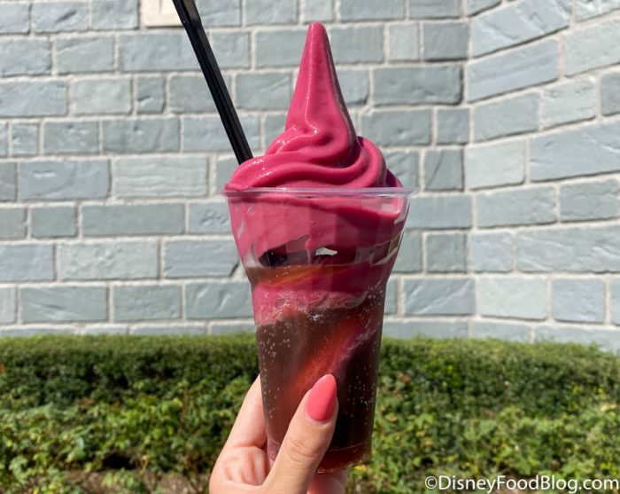 Floats are among the funnier Disney World snacks in that we either seem to LOVE them or really want nothing to do with them. It’s as if we had soft-serve floats on a sliding scale, and on one end was the Kakamora Float, but wayyyyy on the other end was something akin to the Poor Unfortunate Souls Float. And somewhere in the middle, but leaning more toward the Poor Unfortunate Souls, is where you’ll find the Cherry Coke Float.