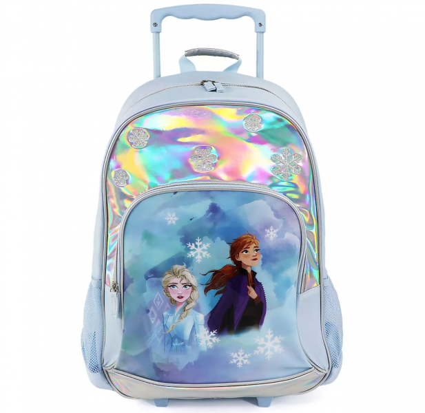 Let’s check out some of your options for these awesome savings! Frozen fanatics will love this Anna and Elsa Rolling Backpack, complete with an iridescent background.
