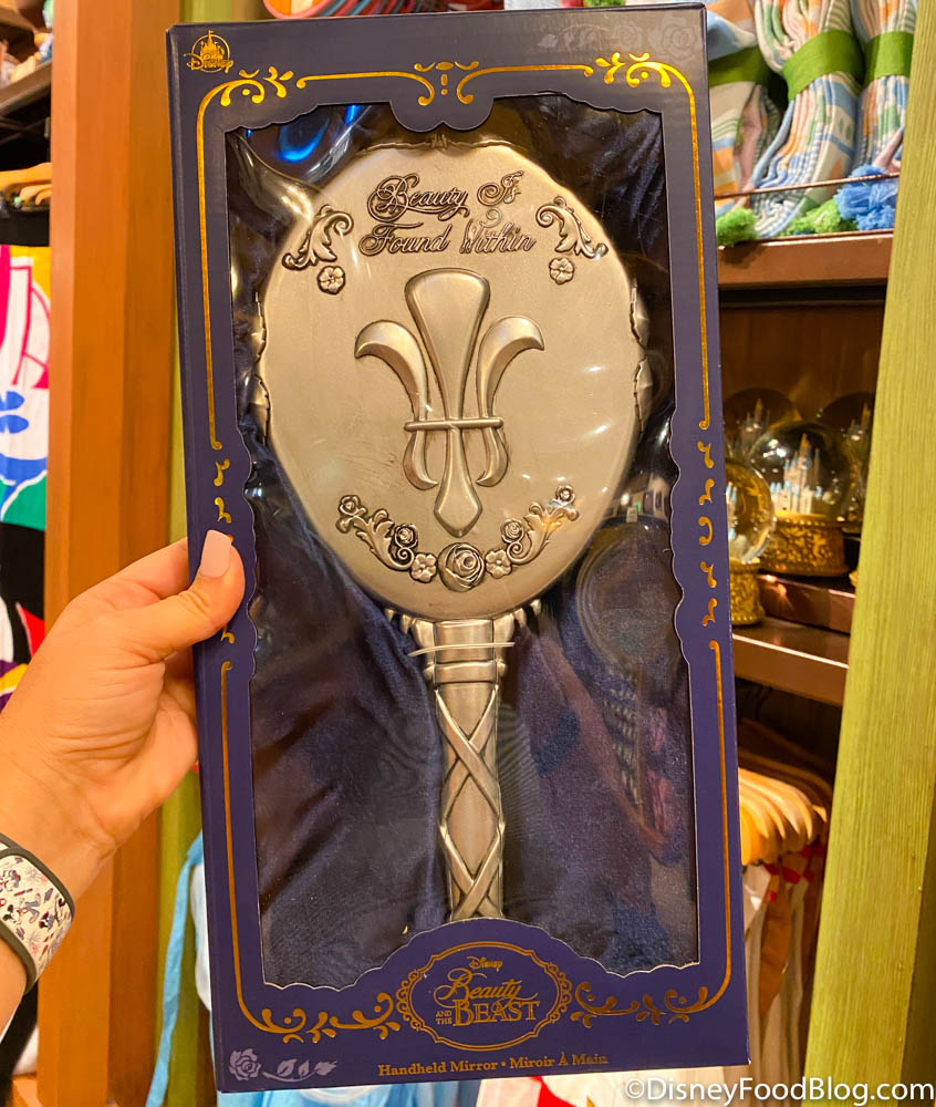 At Riverside Depot, we spotted a new Beauty and the Beast handheld mirror! It features some rose detailing and script that reads “Beauty is found within.” It’s $29.99!
