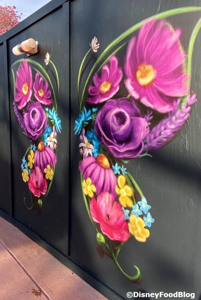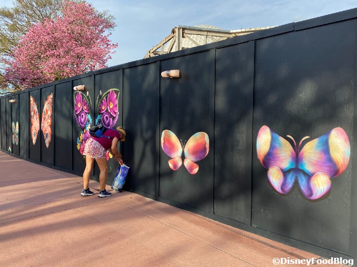 And today, we found another sign of a new EPCOT festival, and it’s a very 2021 EPCOT sign — new butterfly wall art on the park’s construction walls!