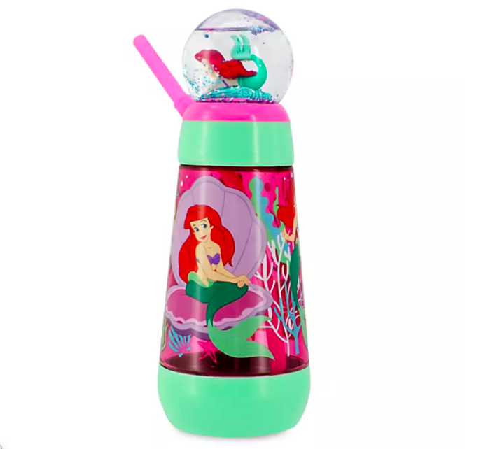 There’s also quite a few snowglobe tumblers! This Ariel Snowglobe Tumbler features screen art from The Little Mermaid — with a mini snowglobe on top! You can spin it or shake it to see shimmering glitter.